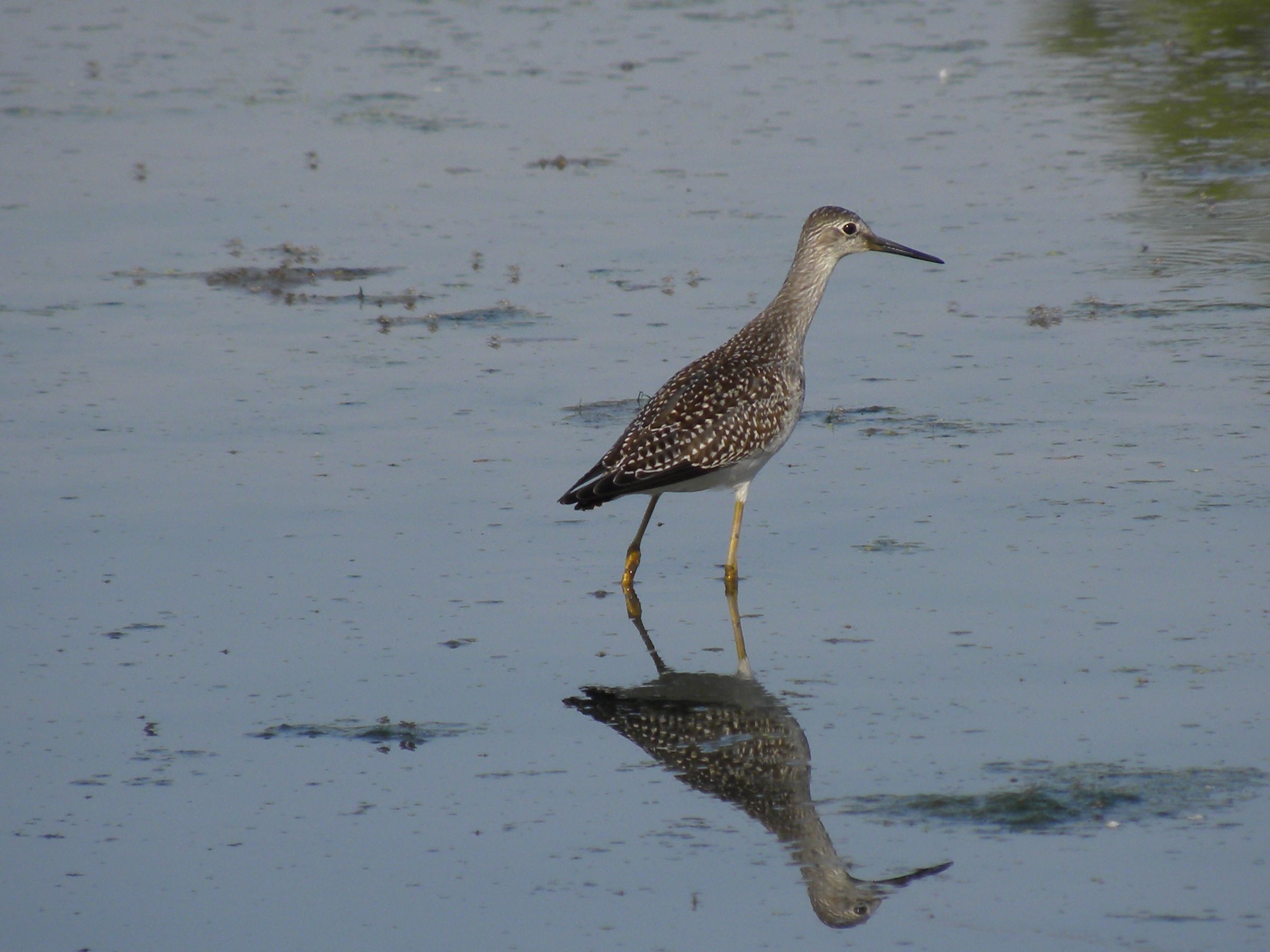 Caspian Terns noisily dominated the area but dozens of Lesser Yellowlegs prowled around picking hungrily. Some, like this one, came quite close to my shore and allowed close study.
