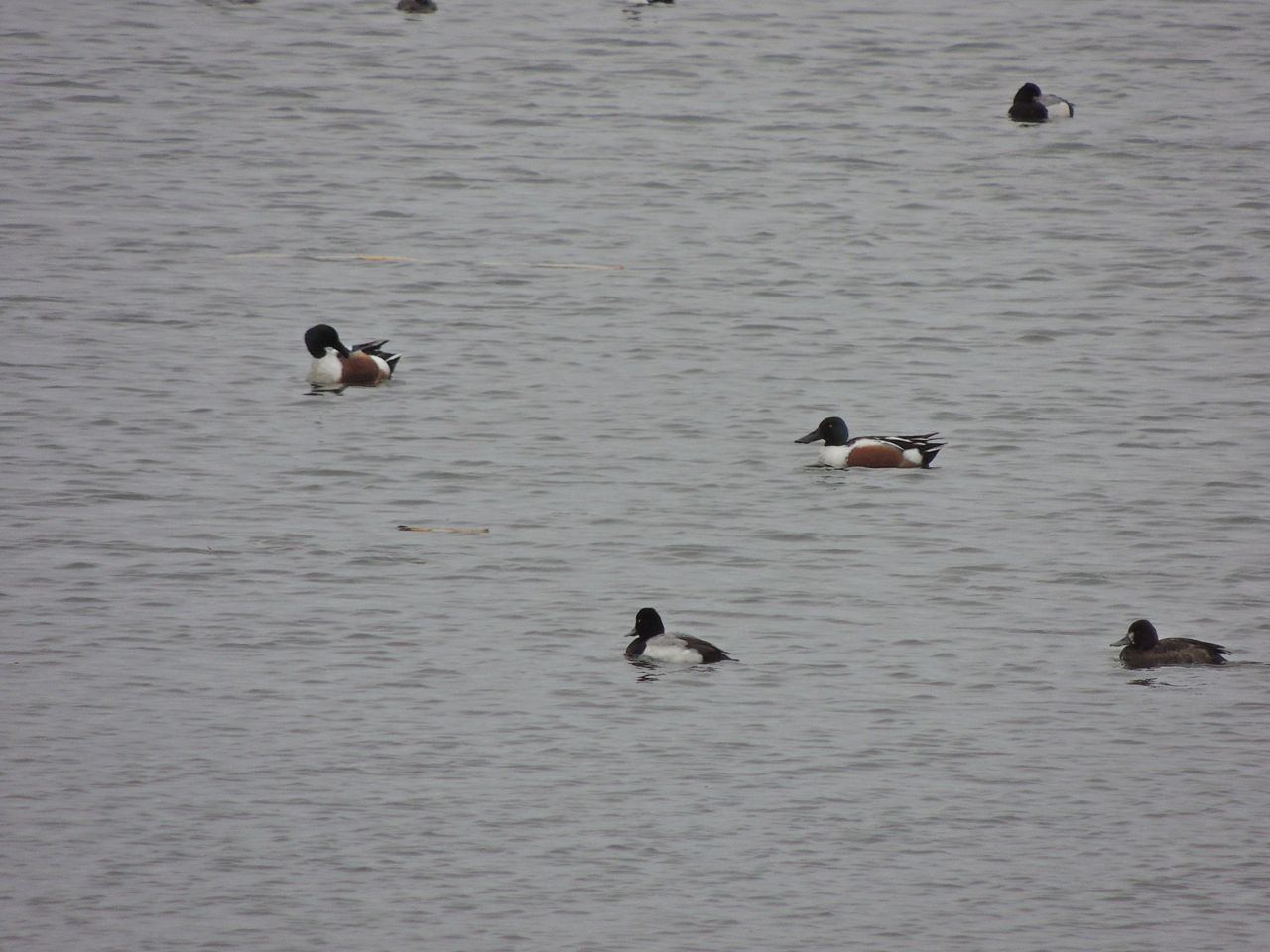 Lastly I stopped at one of our nastier industrial birding sites where, in the dubious waters of a canal, which counts as part of its headwaters the discharge from a sewage treatment plant, were dozens of Lesser Scaup, American Coots and Northern Shovelers. I understand that those waters may be relatively warm and that the supply of invertebrate food is probably quite nourishing, but hanging around in waters like that can’t be good for a species’ reputation.