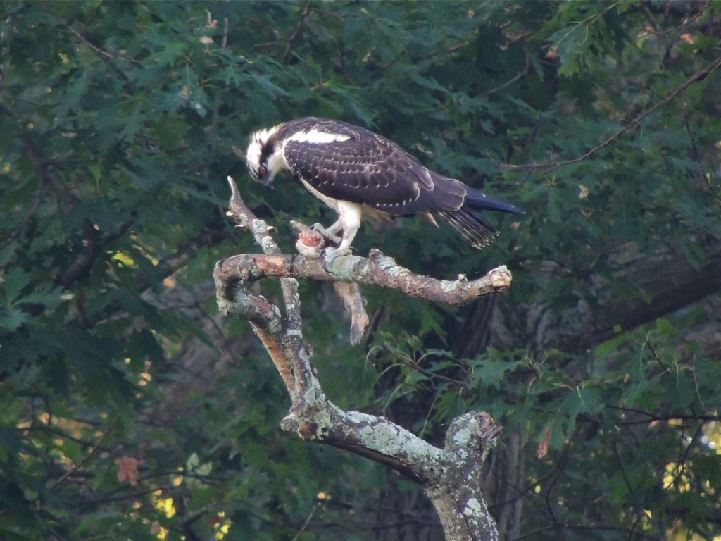 A wheeling Osprey landed close by and ripped a few shreds from a captive fish before leaving to find a more private place to eat. Flocks of young Cedar Waxwings hung around tree-tops everywhere, we found a House Wren skulking deep in a grape tangle and heard but didn’t see two Carolina Wrens. Our list grew to thirty-eight species and towards the end of our walk there was a cascade of notables: A couple of cautious-looking Brown Thrashers skulking deep in the undergrowth trying to avoid being seen; a pair of Cooper’s Hawks glimpsed skimming overhead and a young Yellow-bellied Sapsucker among them. As the sun warmed the air and lit up the tree-tops we found quite a few migrant warblers; American Redstart, Nashville Warbler, and a Common Yellowthroat. A bright yellow Wilson’s Warbler and a Northern Parula gave short bursts of colour to remind us of the good old days of spring. (Three photos below are visible only on the website, not if you’re reading this as an email.)