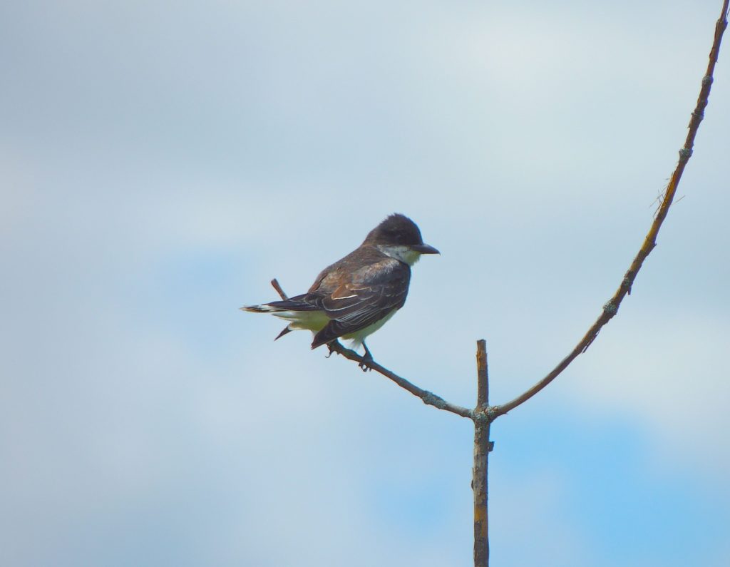 Much later I stepped off the trail for a while to follow the songs of Vesper Sparrows drifting from a dry, scrubby pasture. Sitting quietly in welcome shade, I watched a pair of Eastern Kingbirds flitting to and from a small tree in which I assumed they had a nest with hungry young. Vesper Sparrows patrolled all around me and I heard the soft clucks and coos of a Yellow-billed Cuckoo.