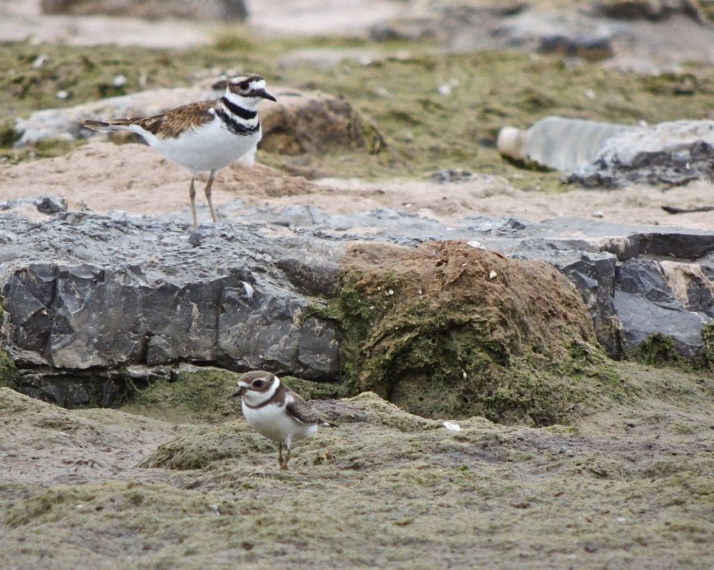 Common Ringed Plovers are, as their name suggests, very common, just not here. They are a Eurasian species that looks very much like our Semi-palmated Plover, shown in the photos below (and a Killdeer for comparison and scale). Semi-palmated Plovers are frequent passage migrants on their way to overwinter along the shores of the Atlantic and Caribbean.