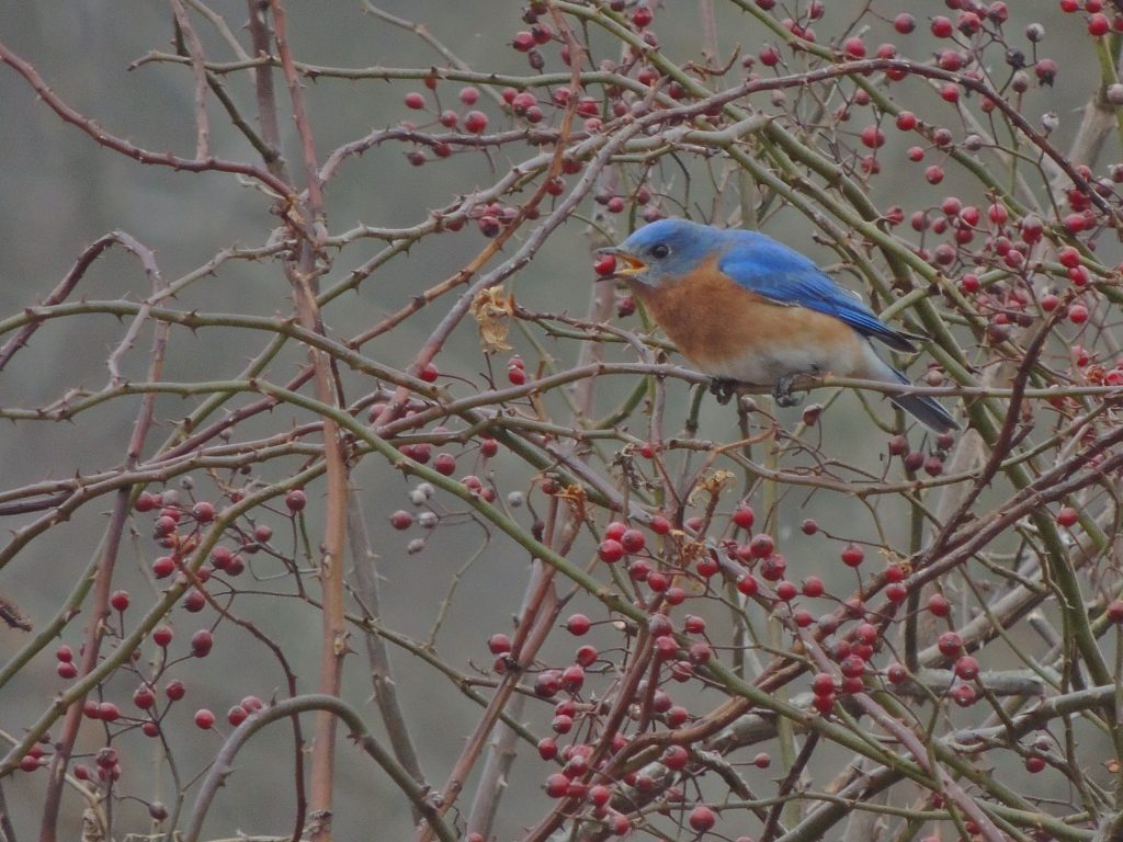 Good shots of the bluebird. Especially interesting eating the Multiflora Rose on March 11.