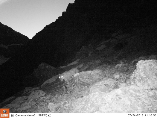 Our teams’ many days of work paid off though, one team found footprints of a leopard mother and cub, expedition scientist, Dr. Volodyar Tytar, interviewed a herder and accepted as credible his report of finding the body of a cub high up the head of a valley, and best of all, one of our camera traps took a picture of a Snow Leopard, the first in five years; here it is.