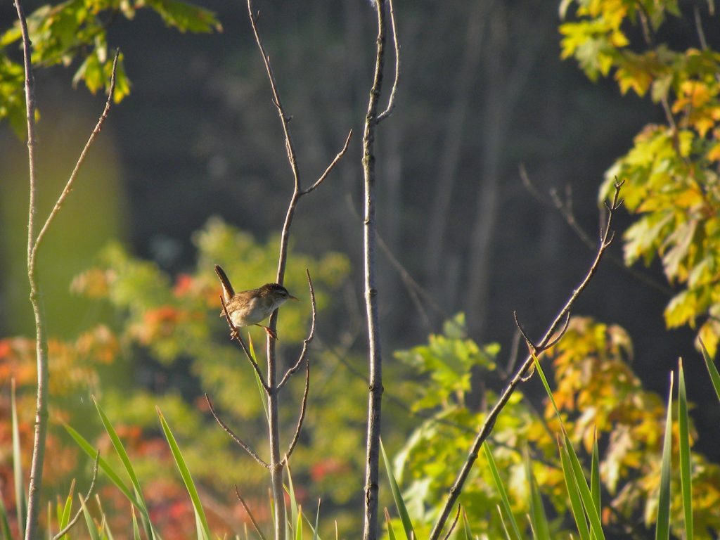 I saw little else as I walked the road across the marsh. I could hear Marsh Wrens, a rather far-off Least Bittern and the banshee song of a Pied-billed Grebe. Any and all of which made the early rising worthwhile. I heard a wet song, the gurgling of something I couldn’t pin down, ‘bugled cluckings’ Pete Dunne calls them, coming from a sparsely vegetated inlet. I backtracked and a duck-sized bird flew up and across the road and, based on a half-second glimpse, I decided it was a probably a Hooded Merganser. I’ve heard female mergansers utter a funny muffled bark when startled and I rationalised that was close to what I’d heard and seen; plausible anyway. Musing self-congratulation for an identification on the run, I peered back to where the supposed merganser had come from and where I could still hear a soft rhythmic clucking, I saw slight movement, not a merganser but something black with red, perhaps a male Red-winged Blackbird, also highly plausible.