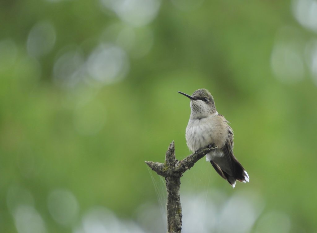 Our 3-hour morning hike turned up nearly 40 different species. All the familiars: Blue Jays, American Goldfinches, Gray Catbirds, Great Blue Herons and Hairy Woodpeckers included, but some intriguing specials too. The best of which could easily be the Pied-billed Grebe, the Blackburnian Warbler or Chestnut-sided Warblers, but I think My Bird of the Day would be this lovely young female Ruby-throated Hummingbird perhaps for the secrets she holds.