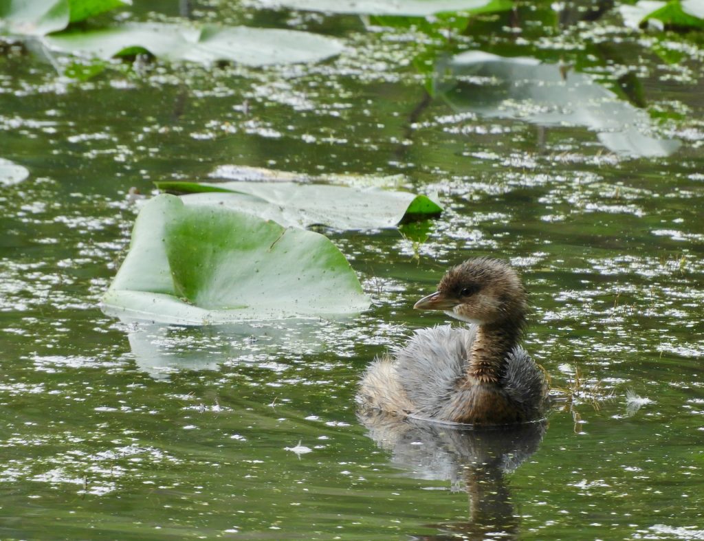 Quite unexpected was this Pied-billed Grebe. Maybe it’s the time of year or maybe it’s just a naive youngster, but Pied-billed Grebes are usually difficult birds to get close to. They prefer to keep their distance, and, if in the slightest bit threatened, retreat into pond-side vegetation or dive, sometimes slipping below the water like a submarine. Not this one though, it was on the edge of a too shallow pond, barely 5 metres from us and showed no alarm about our presence, conversation or movement.