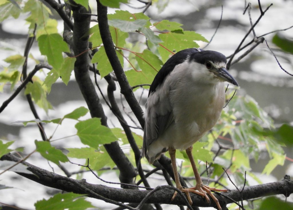Late July is not good birding, it’s so quiet. The frenzy of spring migration is far behind us, most birds have either raised their broods to independence or are tending their second or third ones. I left home this morning, long before breakfast, to walk one of my favourite circuits, mostly for the exercise. It was a pleasant walk but, for birds, it was unexceptional – although I suppose an Eastern Screech Owl, a Black–crowned Night Heron (photo below) and a three sunlit Great Blue Herons like marble statues in the early light must count for something.