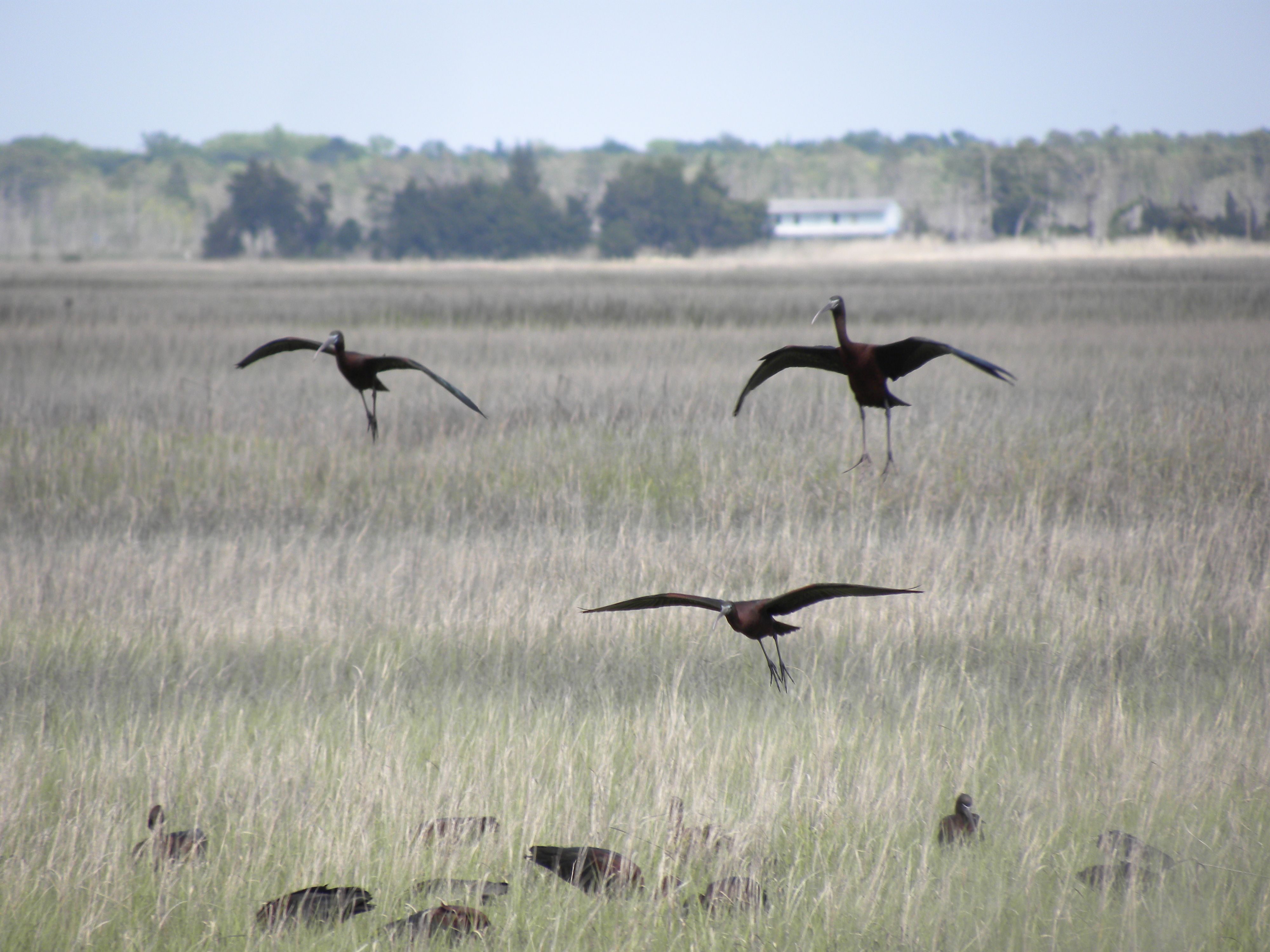 3 Glossy Ibis coming in to join the flock. Cape May N.J.