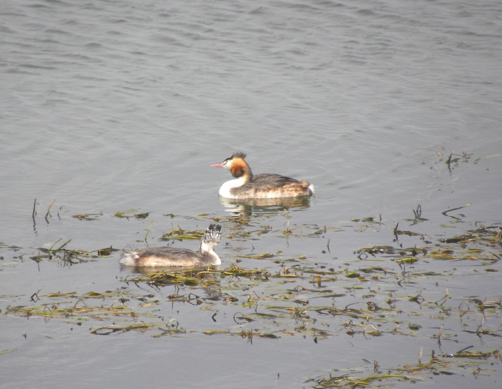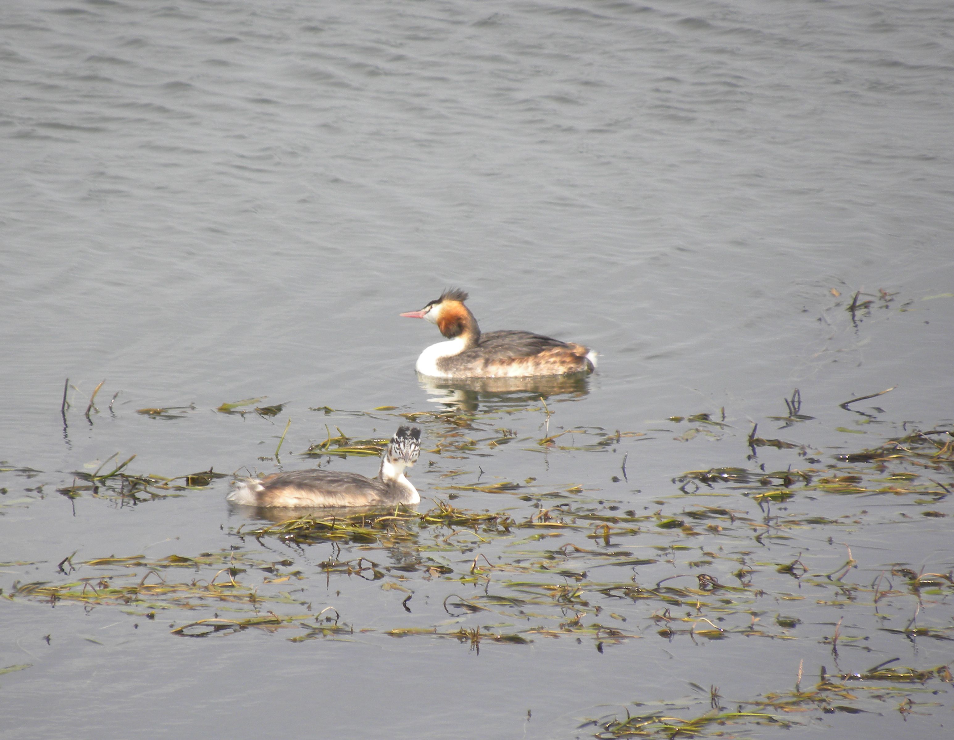 Previous ImageNext Image Great-crested Grebe Great-crested Grebe with youngster still hanging around and expecting food.