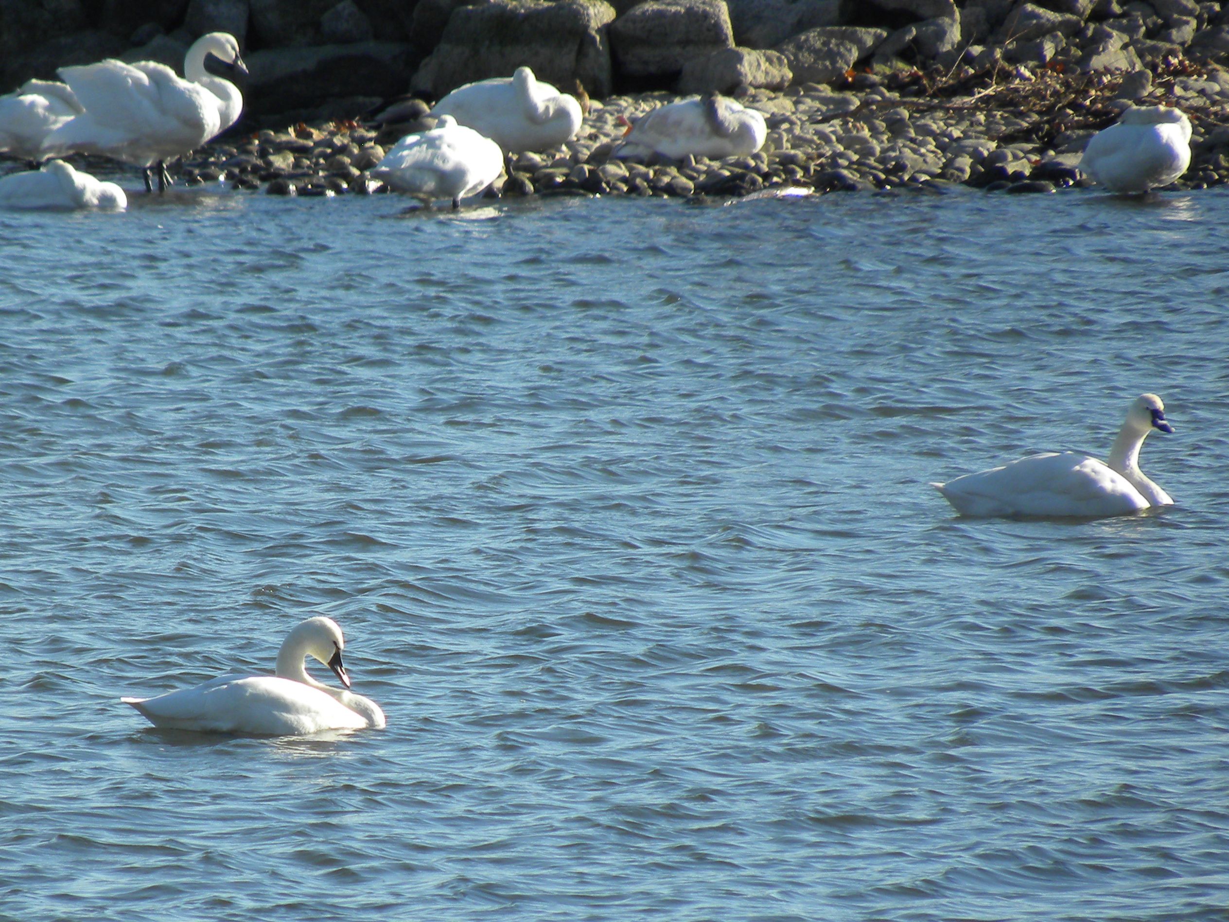 Previous Image Tundra Swans. LaSalle Marina Dec 13 2012 Tundra Swans. A little distant, but note the almost complete separation between the dark bill and the eye.