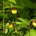 I can’t close without acknowledging the company of endlessly singing Red-eyed Vireos, both Eastern Meadowlarks and Bobolinks fluttering like large wind-caught leaves over the hay fields and a vocally responsive but hidden Sora. And there were the butterflies, dragonflies, ferns and hundreds of flowering Yellow Lady Slipper orchids too. Almost too much for one weekend. Here are a few photos from the weekend: a Cedar Waxwing, the Grasshopper Sparrow, the Scarlet Tanager, a Male Fern and some Yellow Lady Slipper orchids.