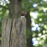 I was exploring a new-to-me woodland, following a well defined but little used path.  The woodland was open, sun-flecked and dry, mostly Sugar Maples overhead and some interesting ferns in the rocky edges.  There were family groups of American Robins and Northern Flickers around,  the robins clucked nervously and milled around, the flickers were quite vocal, chuckling and calling whilst playing improve-your-flight-for-better-fitness games. Interestingly, though not ground-breakingly so, I saw four kinds of woodpecker there, the aforementioned flickers, then Downy, Hairy and Red-bellied Woodpeckers, all in the same general area. And speaking of that general area, it was a rather open expanse that sloped away towards denser cover, I found a convenient log and sat quietly for a long time watching over a wide expanse of forest.  There was lots more activity including many Black-capped Chickadees, a couple of Rose-breasted Grosbeaks, an Eastern Wood Peewee, Red-eyed Vireos and far away, a singing Winter Wren.