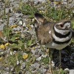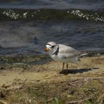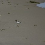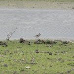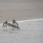 A careful sweeping survey of the mud flats turned up a distant Short-billed Dowitcher, several Lesser Yellowlegs and a handsome pair of Stilt Sandpipers. I found and enjoyed watching a couple of Semi-palmated Plovers, our only reasonably common small plover, and mentally compared them to the very similar though much paler Piping Plover seen in New Jersey last year and petite Snowy Plovers of El Salvador four months ago. These three plovers are all members of the Charadrius genus, a group that is distinctive in having a dark breast band or two, our common Killdeer is the most familiar member of the genus to us. Here are a few of my pictures for comparison (viewable only if you are logged in to My Bird of the Day, not if you’re reading this as an email.)