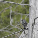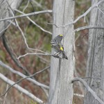 The following four shots of a male in spring show the classic Yellow-rumped field marks well.  Apart from the splashes of yellow, the back and wings are a much more intense grey/black.