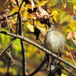 14 October 2013. Cayuga ON. The Yellow-rumped, formerly Myrtle, Warbler is a hardy soul.  Unlike its delicate, early to leave, tropical class-mates, (the Blackburnian Warbler comes to mind) the Yellow-rumped doesn’t need to go so very far south; they can live, subsist anyway, on the berries of winter. A precious few even hang around here well into the winter and with occasional sightings in March, it’s probable that they make it out the other side.  But most of them leave, turning off the lights as they go.