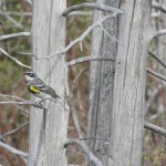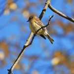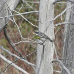 This Yellow-rumped Warbler (Bird of the Day) was one of many flitting and dodging around us.  Most of them were impossible to follow but this pretty little thing decided to sit long enough for a photo-shoot. It’s probably a female hatched this year so there’s little you can point to as a clear field mark, it’s perhaps a good example of how unremarkable Yellow-rumps can appear.  For me it’s a combination of one or more clues: The time of year: their liquid contact note – ‘plip’; the sometimes streaky breast with yellow patches towards the shoulders or; the rather bulky size.  All help, but always diagnostic (provided it’s visible) is the yellow rump.
