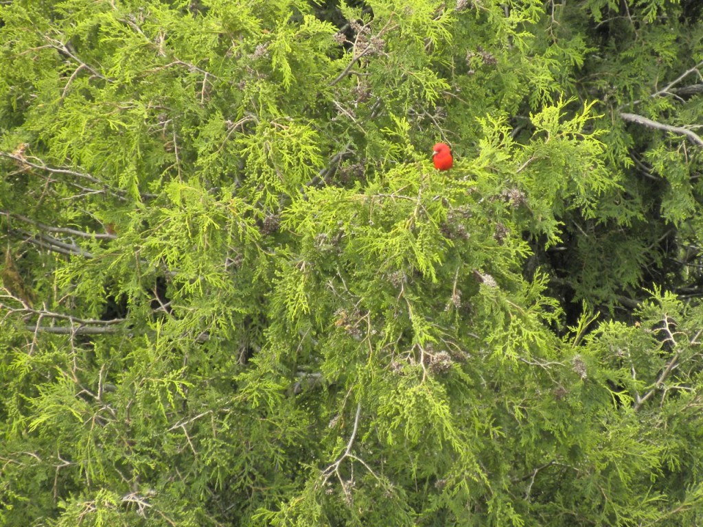 Scarlet Tanager on Cedars too far away