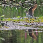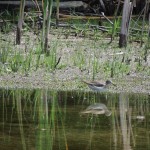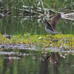 The Solitary Sandpiper’s name is appropriate; I only ever see one bird at a time. Presumably every now and then though, a pair gets together to ensure continuity of the species, but I’ve never seen a throng like that. This one is on its lonely southbound migration, with breeding taken care of for another year, it’s heading back to Central and South America. Here are a few photos of it (visible only on the website, not if you’re reading this as an email) I wonder if it is the same bird as the one I saw in the same place almost exactly two years ago.
