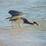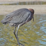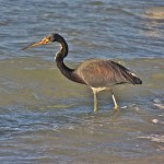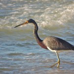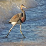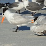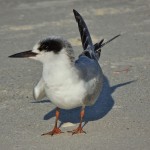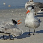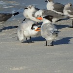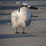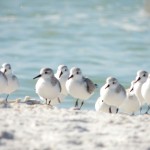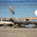 18 December 2014. Estero Beach, Lee County, Florida. We set out to walk the length of Estero Beach hoping for some wintering Snowy Plovers. This wave-lapped beach stretches for miles in both directions, it seems to suit people and birds equally well with its seashell littered shoreline, wide expanse of sand-dunes and shallow, back-water lagoons. Along our way we came across several wonderful sightings: A Reddish Egret with its back turned to a White Ibis and stoically overseeing the comings and goings of wanderers like us; Groups of loitering Wilson’s Plovers and little platoons of Sanderlings wandering around and picking through the white sand.