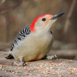 The question is frequently asked why the Red-bellied Woodpecker is so named when clearly it has a red head, not a red belly. I guess there’s a two-part answer: Firstly, the thoroughly well named Red-headed Woodpecker already has the name; and secondly,the Red-bellied actually does have a reddish belly — even though you can hardly ever see it. I suspect some nineteenth century biologist who was holding a museum specimen belly-up in his hand, originally gave it the name. Still, it’s not the best choice, surely someone in that arcane corner of ornithology that dishes out names, can come up with something less misleading.
