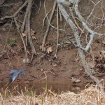 Finally as I was about to wrap up my census I watched a Belted Kingfisher successfully fishing, plunging every few minutes and returning to gulp down little wriggly fish. Here are a couple of shots. (Click each to enlarge) Too bad I didn’t use a faster shutter speed.