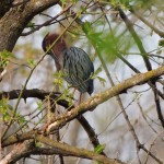 I have been anticipating the return of the Green Herons for a while and today, as I walked the trail, a trio of them flew over, banking low and looking for home. They are quite distinctive in every way: visually they’re elaborately unmistakable, and in flight they’re buoyant, even bouncy. Like most herons they’re vocal croakers when alarmed or in flight, in the case of the Green Herons theirs’ is a sharp coughing bark with an almost metallic ring.
