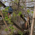 The fly-past group didn’t go very much farther and later as I was on the return leg of the census I spotted two of them in a Manitoba Maple. Two’s company and three’s a crowd, as we know and here were two engaged in either some pair-bonding or territorial squabbling, I’m not sure which. Think back to your own youth, those modes of posturing can be hard to tell apart. The gallery below is of the few photos I was able to get through the trees.