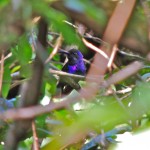 This evening as we enjoyed a late outdoor dinner we both caught a slip of movement along fringe edge of an old cedar, in unison we exclaimed, ‘Hummingbird!’ We don’t see many in this urban jungle – but then, I suppose if we can get Winter Wrens, then why not a Ruby-throated Hummingbird? We followed it for a minute or so as it sipped from the dusty-blue flowers of Russian Sage until it buzzed overhead and landed behind us on an almost invisible twig. It seemed to be willing us to go away, and then I realized that’s exactly what it was waiting for, we were sitting too close to our wonderfully chaotic tangle of storm-battered Scarlet Bee-balm or Monarda didyma. Those bright tubes almost certainly hold what the hummingbird wanted to get at.