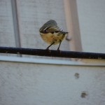 For a tiny bird, kinglets have a lot going for them, they weigh a mere six grams, the same as a Canadian quarter or a British ten-pence coin. They seem to subsist on the almost invisible. At this time of year they are snapping up insects gleaned from leaves and litter in tangles of vines, among bushes and tree branches high and low. The gable end of my neighbour’s house must be teeming with insects, Ruby-crowns have been fluttering for food around his window all afternoon.