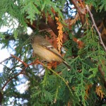 I encountered several Golden-crowned Kinglets on my morning census walk, but on returning home, I found Ruby-crowned Kinglets at almost every turn in my, and my neighbours’, back yards. At any one time there were probably twenty in sight.