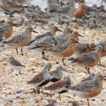 In the slide show below, just for comparison, I have included a shot of a group of spring-plumage Dunlins (foreground) along with several absolutely gorgeous Red Knots.