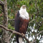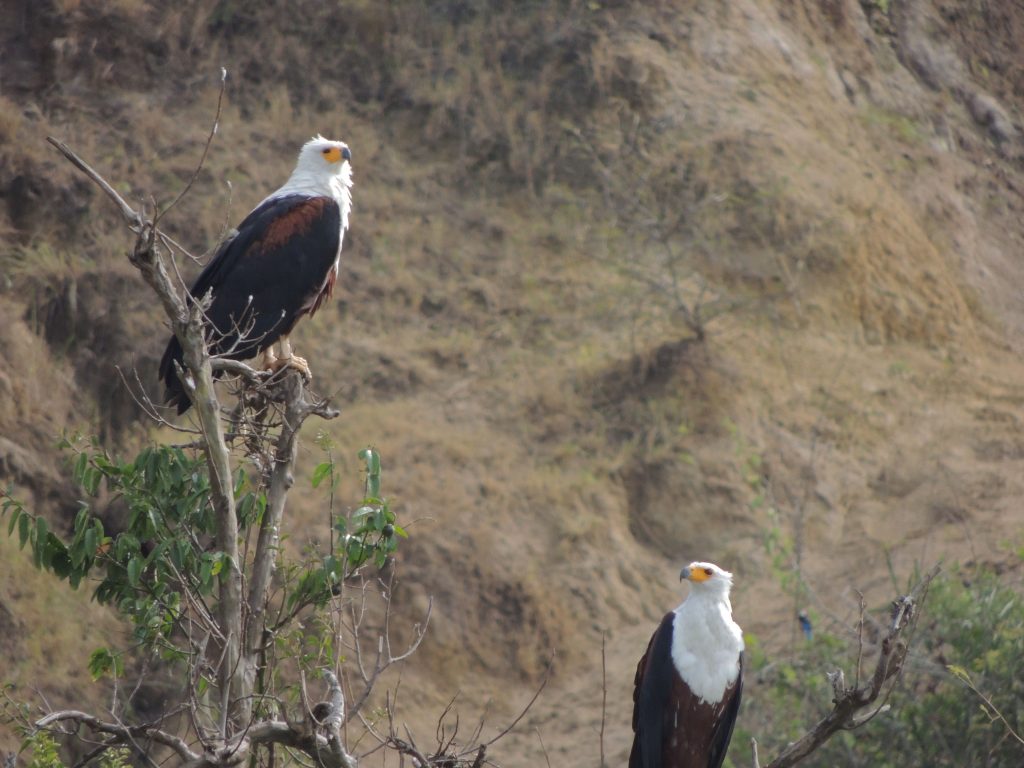 One of the easiest birds to photograph was the African Fish Eagle, indeed a pair of them sat quietly as our tour boat drifted by. Other than the inescapable majesty of an eagle anytime, anywhere, the only thing that gives this bird a little more intrigue is that it is so closely related to North America’s Bald Eagle and Eurasia’s White-tailed Eagle. Not only is it in the same family but also the same Sea Eagle genus Haliaeetus. But in true African style this one goes a step further than either of those basically black and white cousins and has dark chestnut undersides. A magnificent bird; but then they all are.