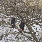 The scene would probably be incomplete without some vultures hanging around nearby. Fortunately it didn’t take long for my guide Robert to point out a classically hunch-backed group loafing on a suitable flat-topped tree; they were waiting for something meaty to come to an unhappy ending I suppose. From the comfort and safety of our Land Cruiser we determined they were African White-backed Vultures. Lions and vultures, what could be more fitting?
