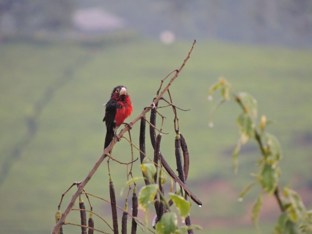 But turacos were just a start to a walk of startling variety. The bird species list included some nearly-familiars like Olive-bellied Sunbird, Brown-eared Woodpecker, African Green Pigeon, Grey-headed Negrofinch, and White-throated Bee Eaters, all of which I noted as plausible if not immediately familiar. And then there were others with exotic sounding names like Grey-backed Cameroptera, Brown Iladopsis, Western Nicator and Hairy-breasted Barbet, not one of them would I know if I saw again. Although, for what it’s worth, a Double-toothed Barbet stationed itself outside the door of my cottage that evening – and it is a memorable bird.
