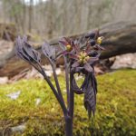 These birds made my day. Otherwise I did rather too much aimless wandering looking for anything the spring winds had blown in. I watched a Peregrine Falcon in territorial display by an established nest site, a male American Kestrel and a couple of active Eastern Meadowlarks. But it was a bit unsatisfying so I opted instead to scout out a woodland where I’m scheduled to lead a nature walk early next month. Capturing shots of the emerging leaves of Wild Ginger and flowers of Blue Cohosh was every bit absorbing as the close study of two yellowlegs species. There’s always something to be learned outdoors.