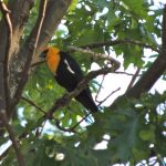 Birds of the Day for several reasons: I’d never seen one before so it would be an addition to my life list should I ever compile one; They were startlingly larger and more imposing than I’d anticipated, I had imagined them be about the same as Red-winged Blackbirds but substituting yellow heads for red wings; And they reminded me strongly of the raucous Yellow–winged Caciques common in the urban parks of western Mexico, so strongly that, for a while, I wondered if they were closely related; it turns out they’re not.