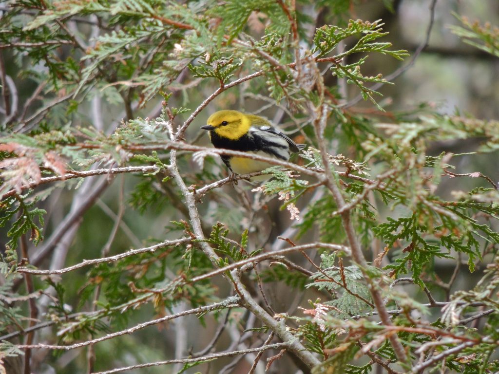I try to get out and revisit favourite sites or explore as many new places as I can during these birding doldrums. Today I revisited a really interesting and geologically varied conservation area; it encompasses the headwaters of a significant cold-water stream and has been the site of many instructive encounters over the years. I spent a couple of hours following the stream as it made its sparkling way through a thick and often boggy forest of Eastern White Cedar. In the gloom I was happy to pick up the faint two-note call of a Black-throated Green Warbler, just a fragment of its much longer ‘zee zee zee zee zooo-zee’ spring song and a confirmation that the species is almost certainly breeding here, apt because dense conifer forests are their first choice.