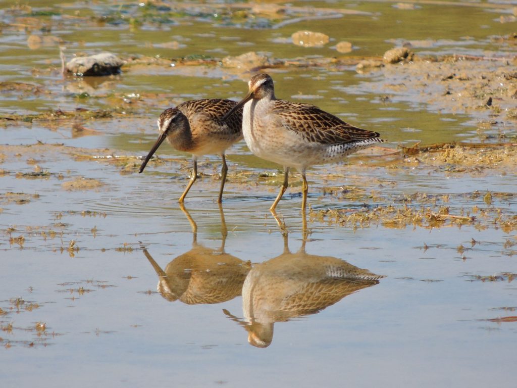 We were enjoying a privileged birding spectacle, just us and all these shorebirds! A spectacle that in the U.K would have attracted many dozens of birders and a collective fortune in optical equipment. I was thrilled to pick out a slightly different-looking bird that turned out to be a Stilt Sandpiper, perhaps the only one among the many look-alikes. I can barely remember the last time I knowingly saw a Stilt Sandpiper and studying it today was a lesson that will stay with me. Next time I should have no trouble picking one out in a crowd.