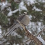 The Gray Jay has been the centre of quite a bit of political fuss lately, the jays themselves couldn’t care less. The Royal Canadian Geographic Society, citing inaction by the central government, decided that more than anything else Canada needed a national bird. Predictably most Canadians pointed to either the Common Loon or the Snowy Owl as most the appropriate embodiments of the Canadian personality, but both of them, while arguably worthy, had already been claimed by a couple of provinces. (Somehow the Canada Goose didn’t get much of a look in.) The Society was steadfast in its deliberations and noted that because Gray Jays are found across Canada from coast to coast the title should go to it. Fine, but few ever get to see one because they are generally found too far off the beaten track. Now it seems that there is a move afoot to rename it the Canada Jay; fitting I suppose.