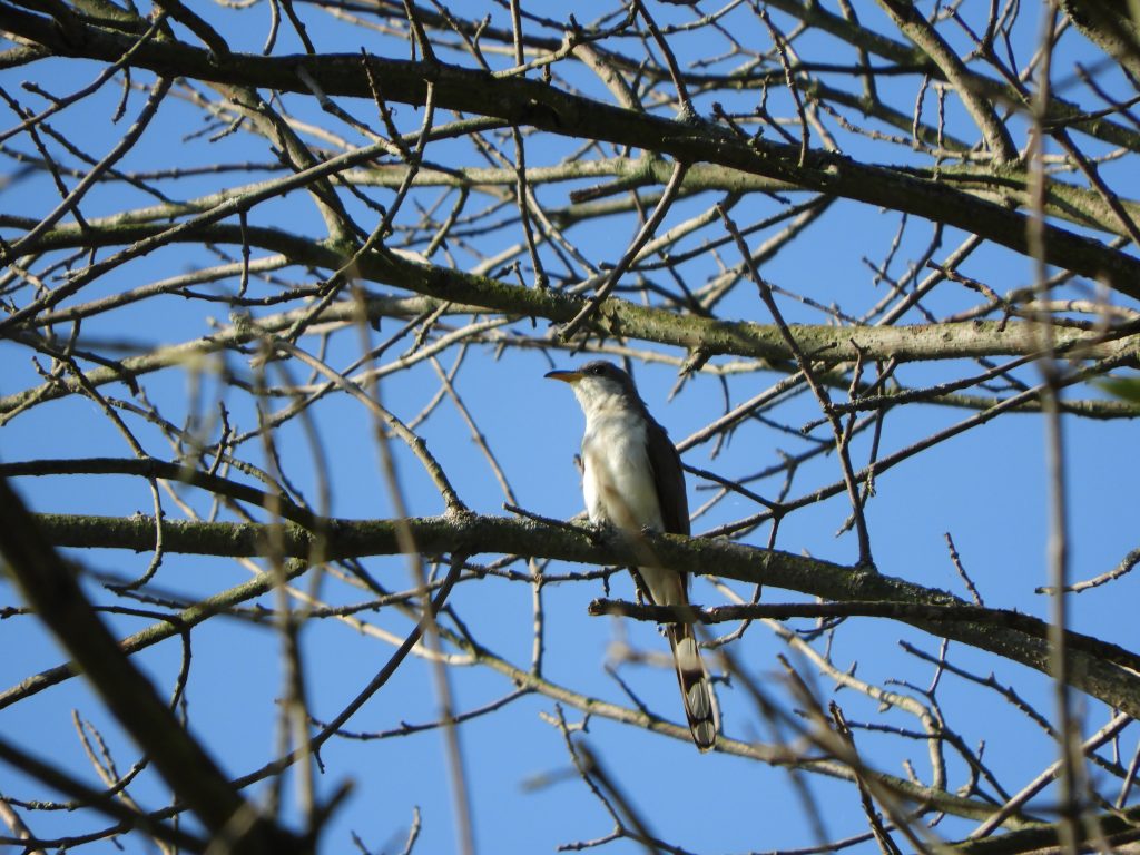 Cuckoos tend to be on the slow and deliberate side as they move around in a tree and when you have a clear view you can usually get a long one. Long enough this morning for some decent photos. Here are a couple – for the Lyns in the birder world.