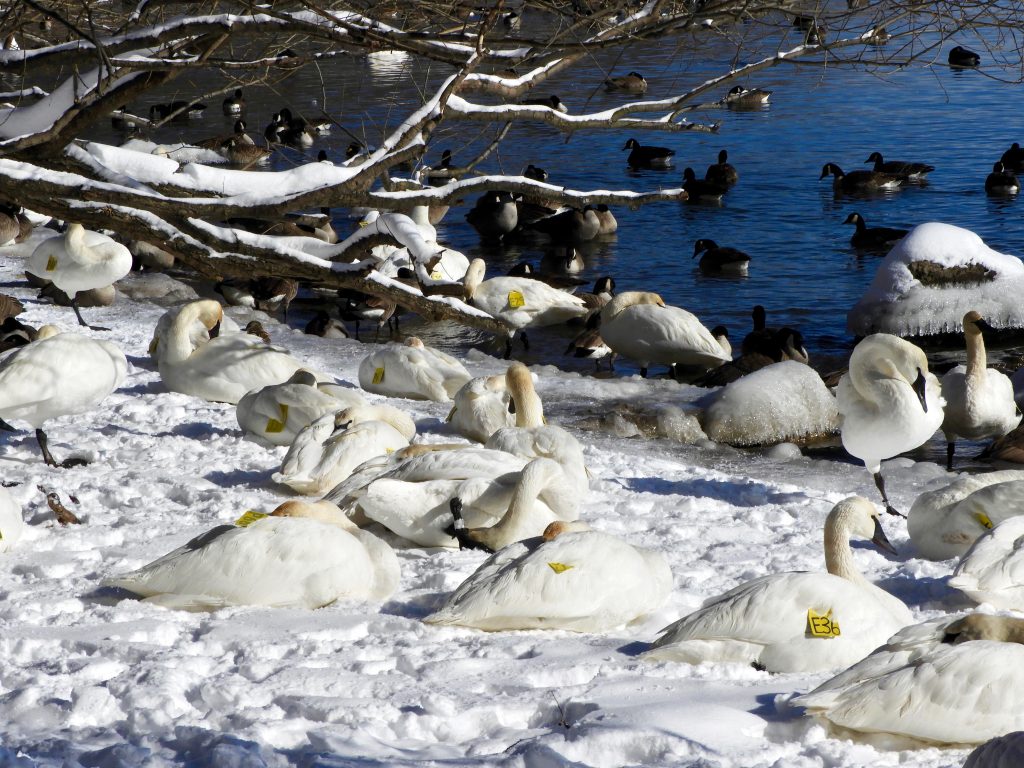 Trumpeter Swans in snow