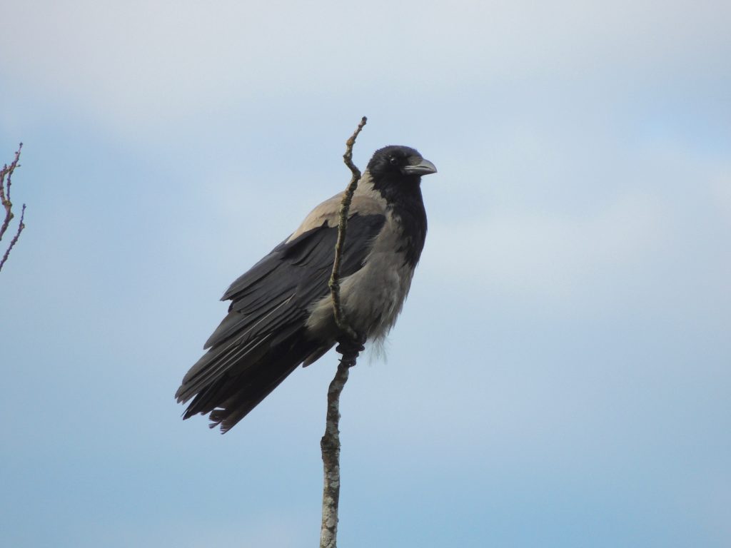 American Crows don’t get much attention, evidence of this is that I don’t have a single photograph of an American Crow. This Hooded Crow, photographed in Sweden, is the best I can do. We know the crow family to be intelligent, but they’re not pretty, they don’t sing and they can be quite ill-mannered in their approach to fresh food. But, all of that aside, today’s American Crow carrying proof of spring was my Bird of the Day.