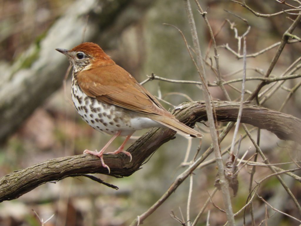 Today on our transect, our first bird was a Wood Thrush, heard but unseen. Seeing it didn’t matter, hearing one is usually enough. I’ll defer to Pete Dunne’s description in his invaluable Essential Field Guide Companion, “Varied song consists of an ensemble of rising-and-falling short phrases that have a dreamlike surreal quality.” Try this link for more. Just the sound of it, and the mental picture, was enough to make it Bird of the Day.