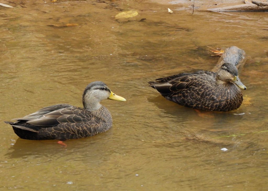 A pair of American Black Ducks watched us as warily as we admired them. I think they were largely indifferent to what our future holds while we enjoyed their simple elegance. These photos are interesting, note how the contour feathers of this bird have buff fringes and lie in a pattern like Art Deco Japanese fans.