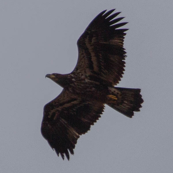 Well, therein a cautionary tale. Much retrospection and scrutiny of photos later and we had to backtrack. It was young Bald Eagle.