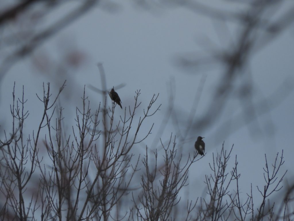 As always it was true there was that one Bird of the Day, Northern Flickers far away atop a winter-rattled ash tree. Just one at first, puzzlingly large and with an out-of-place posture. Through binoculars I could not draw a conclusion as to its identity, maybe a crow, perhaps a Peregrine Falcon. So, I resorted to a device I’ve learned and found to be helpful at times like this: I photographed them using the maximum zoom on my camera and then enlarged the captured image. This was what I saw.