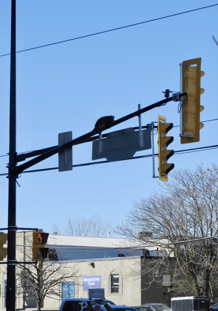 Plains Rd. Burlington. ON. February 3rd. 2021. A couple of unlikely sightings today. The first was a Wild Turkey that had become something of a celebrity in its neighbourhood. It has taken up residence in a busy, mixed-use, urban part of town where followers of a local Facebook group keep everyone current on its whereabouts. Today I photographed it whiling away time on top of an array of traffic lights at a very busy crossroads. A passer-by told me that just yesterday, it had stopped all commerce as it sauntered through the intersection while a police officer directed traffic. It’s not uncommon in this city to have to stop for a slow moving parade of Canada Geese crossing the road, but turkeys!