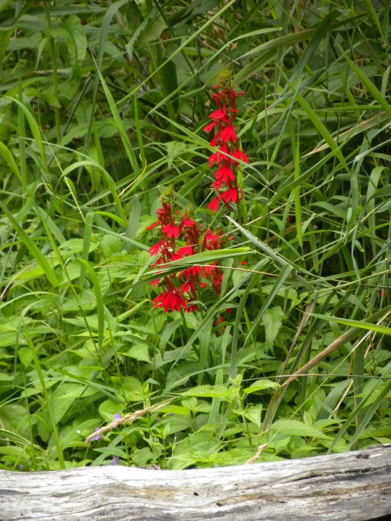 Marsh boardwalk, Royal Botanical Gardens, Hamilton ON. July 31.2021. A change to cooler weather followed a stretch of warm and rather humid days and the freshened air inspired me to walk a few familiar waterside trails. It was time well spent with several interesting bird encounters and, importantly, a couple of quite different moments too: The first, discovering a small stand of Cardinal Flower along a drying watercourse, and second, the flypast of an Avro Lancaster, one of only two still flying in the world. It is as old as me and in about the same condition I think.