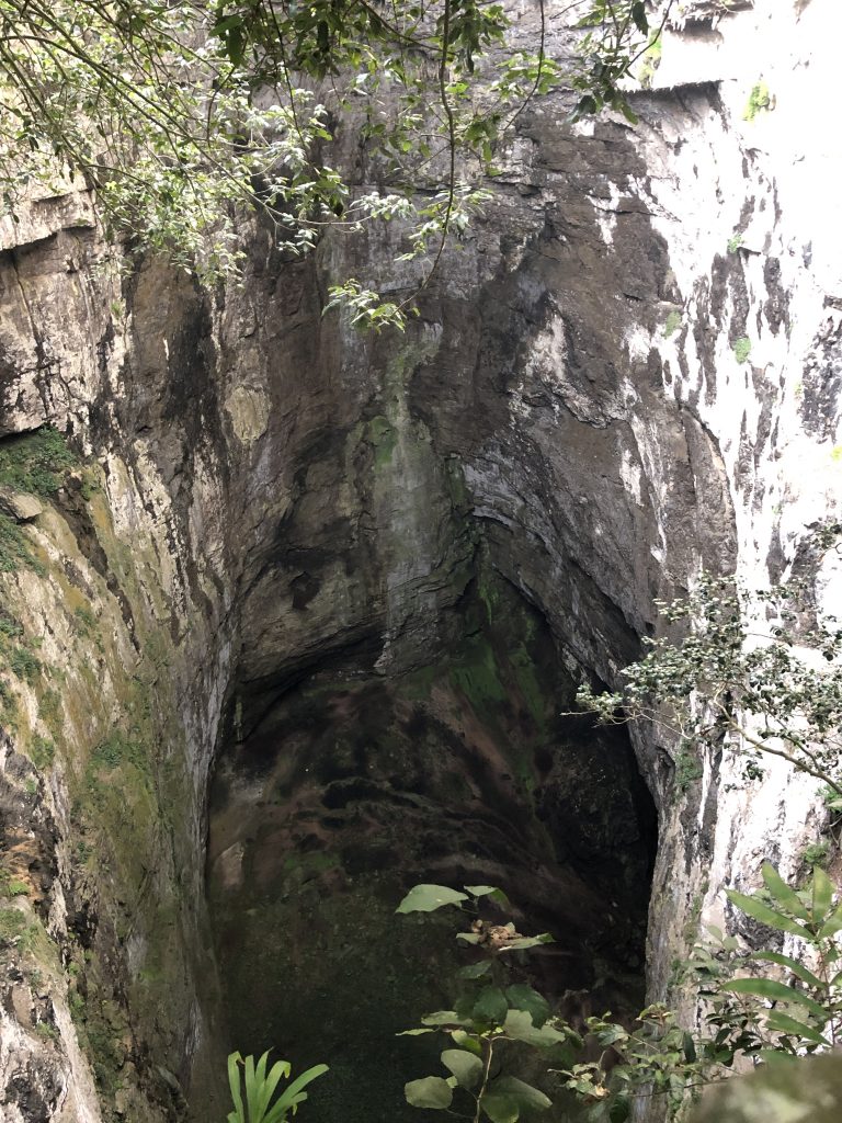 A sótano is one of the many creations of rainwater dissolving limestone, a drip by drip process that creates cracks and clefts and makes underground streams and caves. If and when the roof of a deep cave collapses, a massive hole may open to the sky, like the one we were staring down.