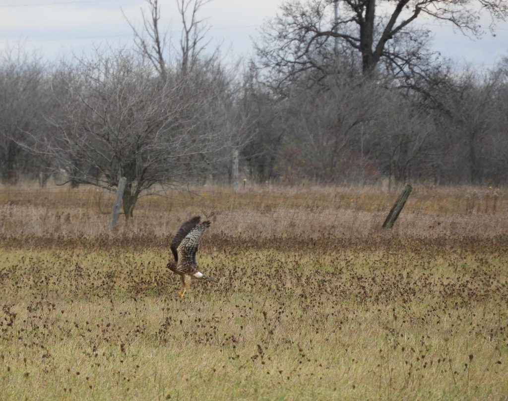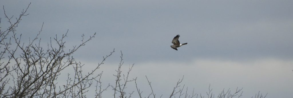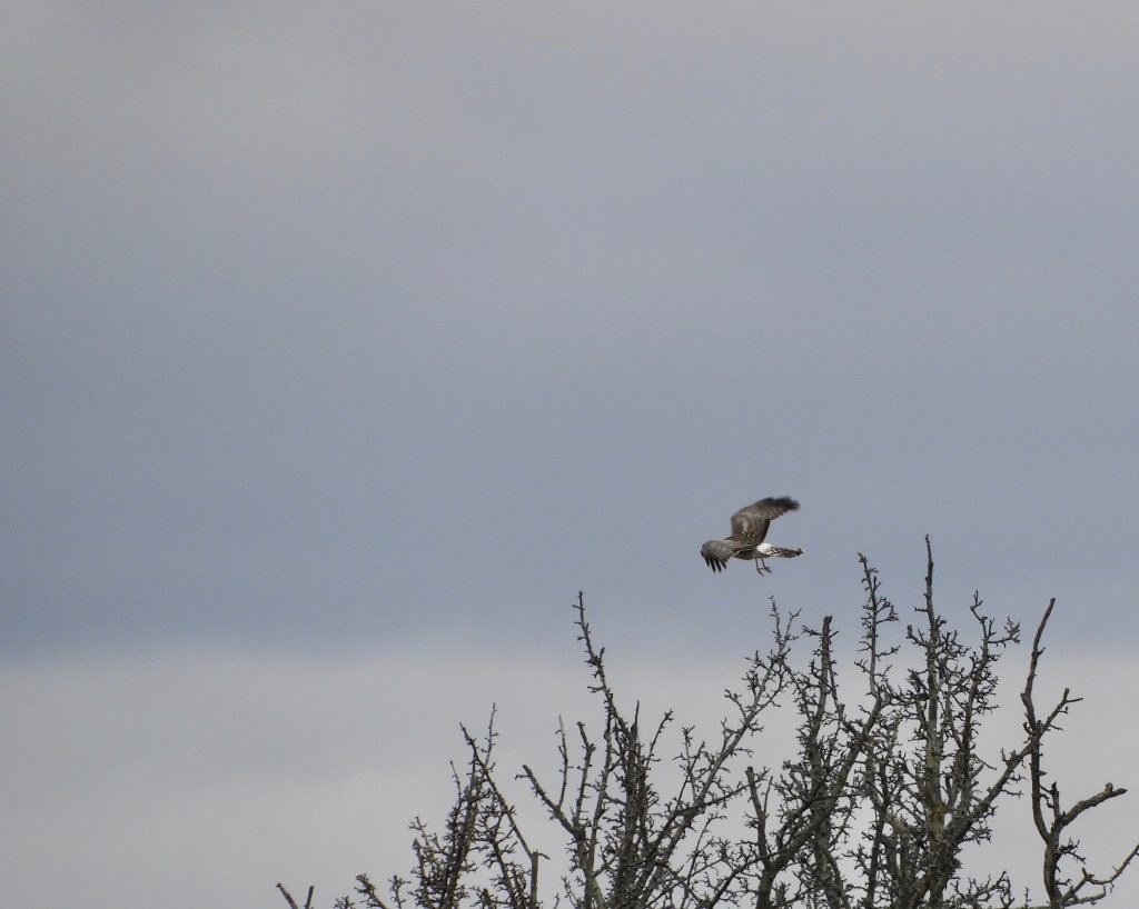 The Common Raven swept past me and perched 50 M away. It hopped anxiously from branch to branch, croaked angrily once more before disappearing deeper into the woods. Then silence. I moved towards where the red-shoulder (if that’s what it was) appeared to be, hoping to be close if and when it showed itself. Luck was on my side, it took flight passing close just the other side of a small group of bare trees and then out into a clearing where it circled a few times backlit by the morning sun. It was difficult to pick out all the key Red-shouldered Hawk field marks but enough to be certain, more than enough to be my Bird of the Day, and Merlin had no doubts.
